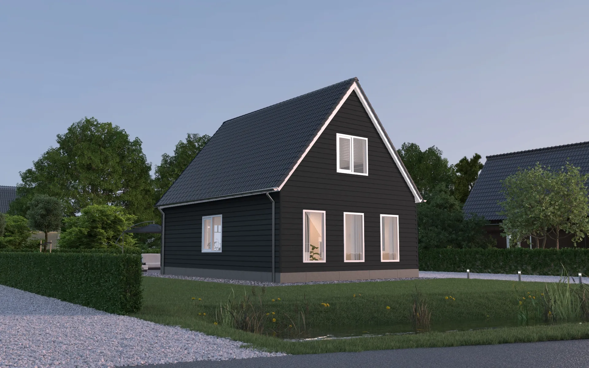 De eerste verdieping beschikt standaard over twee slaapkamers, een complete badkamer en extra bergruimte. Met een nokhoogte van 7,5 meter en een goothoogte van 3 meter oogt de Alblas compact van buiten, maar voelt hij binnen verrassend ruim en functioneel.