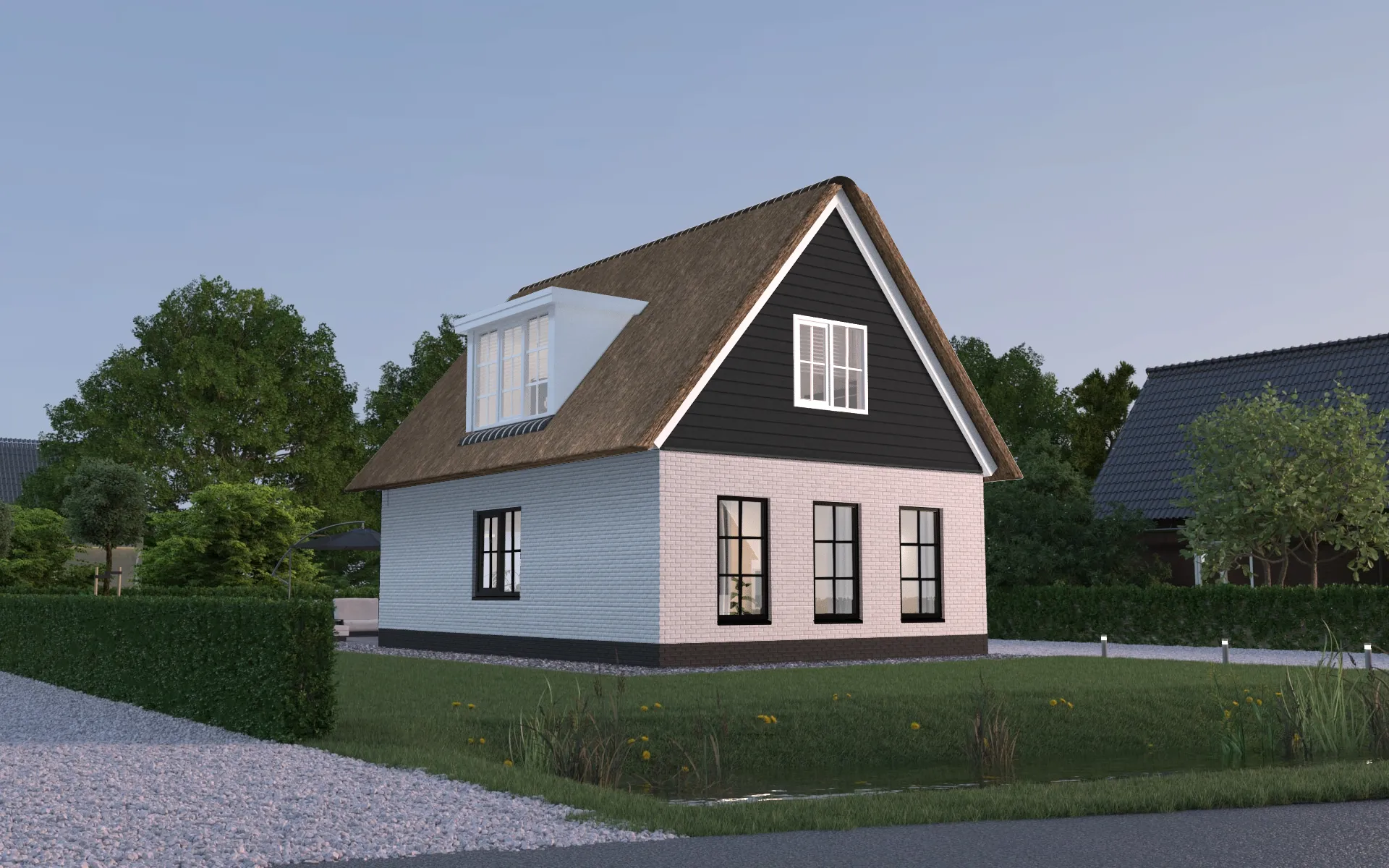 De eerste verdieping beschikt standaard over twee slaapkamers, een complete badkamer en extra bergruimte. Met een nokhoogte van 7,5 meter en een goothoogte van 3 meter oogt de Alblas compact van buiten, maar voelt hij binnen verrassend ruim en functioneel.
